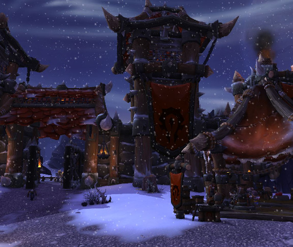 Now, normally in WoW you see other people’s characters running around, but the garrison is “phased,” which means that while you’re there other people’s characters are invisible to you and vice versa, so it’s like you have the place all to yourself. In a sense, everybody gets their own individual version of the garrison, they just all happen to be in the same space in the game world. (Or, technically, in two different places: there are two factions in game, the Alliance and the Horde, and every player character belongs to one of them. The Alliance has one garrison site, the Horde has a different one.)