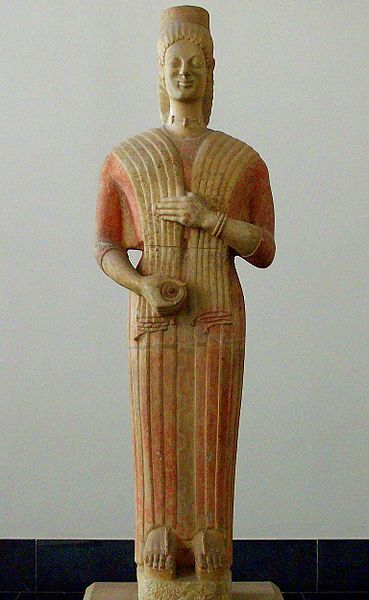 Examples like this statue of a woman, with traces of paint on her dress, suggest what such a statue might have originally looked like.