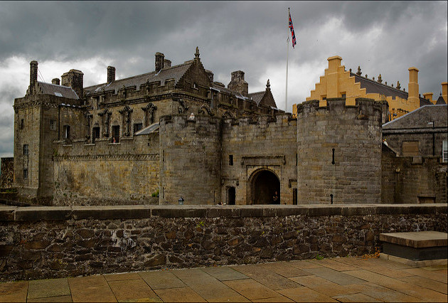 The striking colors of the past are not just a phenomenon of ancient Greece. At Stirling Castle, in Scotland, a recent restoration project has brought back the original rich yellow color of the walls of the medieval great hall, which was determined from traces of ochre mixed with the remains of the lime wash applied to the stone. You can see the striking contrast between the restored great hall in the background and the bare stone of the buildings in front.