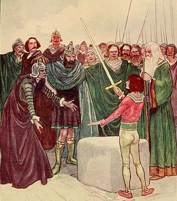 Image: Arthur pulling the sword from the stone from An Island Story by Henrietta E. Marshall, New York: Frederick A. Stokes Company, 1906, via Wikimedia
