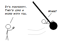 Some line historians see the line pointing towards progress and an ultimate good for all humanity; others see it pointing towards degeneration and the collapse of the human race. Others simply see it as a process of ongoing and inevitable change. The point of studying history for all of them, though, is that we can make better choices for the future by understanding how we got to the present. The past is never going to come around again, but if we can tell which way the wind is blowing, we know which way to spit.
