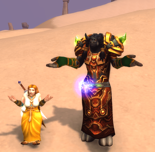 World of Warcraft is a game steeped in lore, with stroylines spanning thousands of years and major expansion themes playing out the emotional lives of lore characters. Nevertheless, it’s a common refrain that gameplay trumps lore (a few discussions of the idea here, here, and here). There are many examples: player characters can come back from the dead, while NPCs (mostly) can’t; heroes who defeated a godlike manifestation of evil at the end of the last expansion may struggle to kill an overgrown crab at the beginning of the next; leveling up from 1 in the game as it stands now is a dizzying exercise in time travel through fifteen years’ worth of story, all of it still happening “now” in the zones of the various expansions. These breaks from lore fidelity make the game more fun and more playable, so even those players who care about the lore in depth generally accept them. The story is there to create background and flavor and give us a reason for going out, killing monsters, and taking their stuff. Whenever the lore threatens to get in the way of the monster-killing, stuff-taking fun, it just steps aside and gets out of our way.