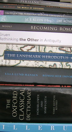 I’m teaching three different courses this spring: Classical Tradition (a broad history of the art and literature of ancient Greece and Rome), History of Rome (from the foundation of the city to the end of the western empire), and Roman Law (an intensive course on legal reasoning—mostly using Frier’s casebook on delict, for those of you who know what that means). Classical Tradition is an introductory-level course mostly for non-majors, History of Rome is a mid-level course with a mix of majors and non-majors, and Roman Law is an advanced course mostly for majors, especially those in the pre-legal track.