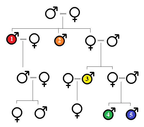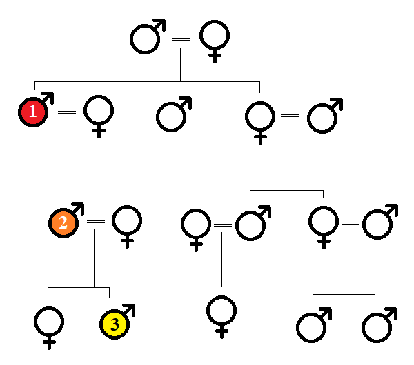 In a patrilineal society, here’s how property and power would pass down from the eldest son of the original couple to his son and grandson.
