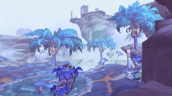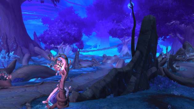 Eppu: I quite like the design of three new zones: Ardenweald, Bastion, and Revendreth. The really fascinating feature about the Shadowlands landscapes is how aggressively height differences—ledges, ridges, ginormous trees, stupendously tall buildings, levitating platforms—are used to squeeze questing areas side by side in order to keep the whole zone from ballooning out to an uncontrollable size. Blizzard has used the same principle before; in Shadowlands it’s really matured, but I don’t think you could take it any further without land shapes turning ludicrous. (Then again, this is fantasy, perhaps they could do it and make it work!)
