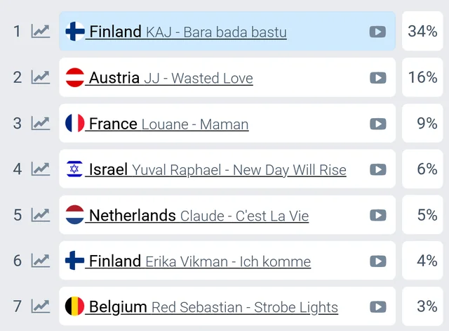 I’m really torn. I really hope KAJ wins, because Bara bada bastu is so joyful, cozy, and sweet, exactly what the world needs right now. But only if KAJ guys get to keep their quirkiness, happiness, and wholesomeness, because it’s part of their charm, and you can’t do that if you’re sleep deprived and exhausted and harangued by media and fans alike. Plus, it would give Sweden their 8th Eurovision win, pushing them ahead of Ireland (both have seven wins ATM), which as a Nordic person I would LOVE.