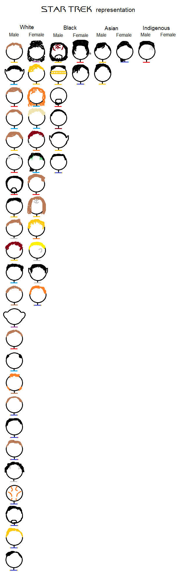 Here’s Star Trek. I’ve included the credited main cast from all the live-action television series.
