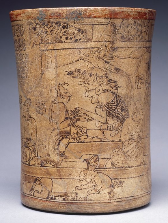The cat is a hieroglyph, one of three on the bottom of the object. Reading from right to left, the feather represents the sound i, the cat represents m (from the Egyptian word for cat, miu), and the sun disc represents n (from the word niut, meaning town or city, which the sun disc sometimes stood for). Put together, these hieroglyphs spell imn, a form of the name of the Egyptian god Amun. Many other scarabs and similar talismans from Naukratis contain forms of the name of Amun.