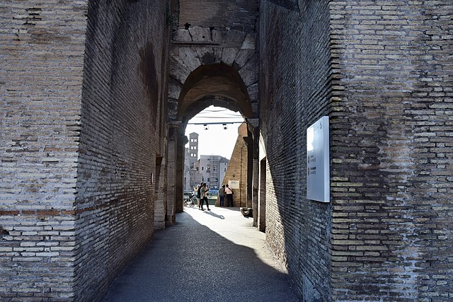 It’s hard to say how formal or widely used the term was. We don’t have any mention of it from Roman texts on architecture. It certainly carries more than a whiff of aristocratic disdain for the crowds of ordinary folks who had to jostle their way into the seats, unlike Macrobius and his upper-crust set who could count on reserved seating. Still, it must have been a word that late Roman aristocrats like Macrobius would recognize, or else there would be no reason to bring it up in a discussion of etymology and poetry. In modern times, architectural historians have taken Macrobius’ bit of upper-class slang and turned it into a technical term for describing the wide entry passages of Roman public buildings, and you’ll find it in more than one scholarly work on Roman architecture, but there’s no evidence that the people who designed, built, or used those structures referred to them as such.