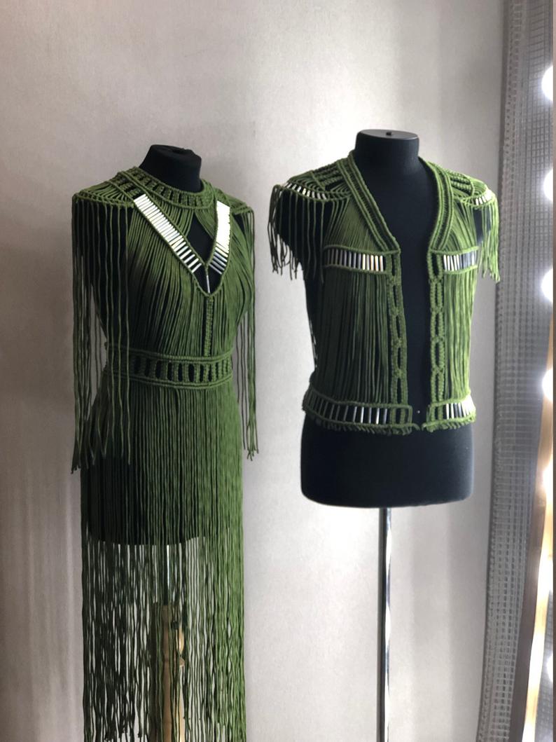 I could also imagine a macramé-style outer garment worn over fabric clothes looking fantastic. Indeed, someone else has had that very thought—check out these outfits promoted as Coachella or Burning Man costumes: