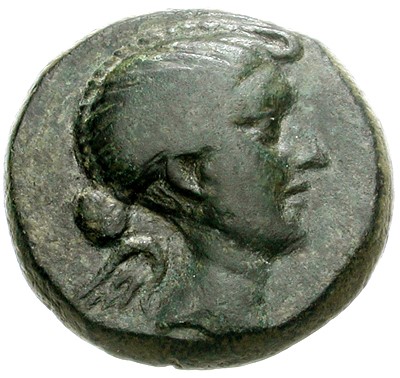 Image: Coin portrait of a woman, possibly intended to be Fulvia; photograph by Classical Numismatic Group via Wikimedia (Copenhagen; c. 41-40 BCE; copper alloy)